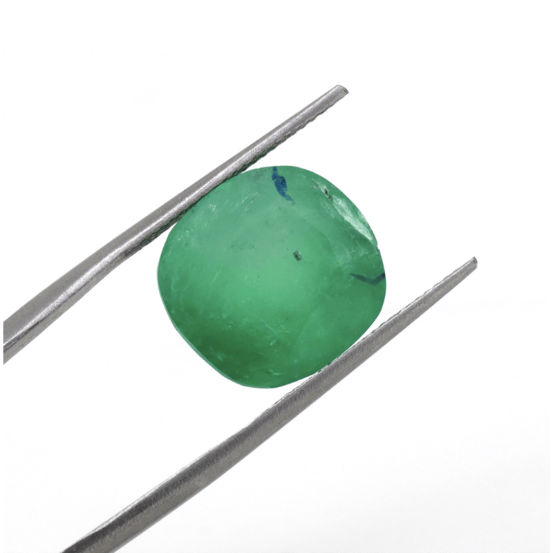 Cushion Cut, Medium Bluish-Green, Included, Chipped, Colombian Origin, Loose, Unset.
