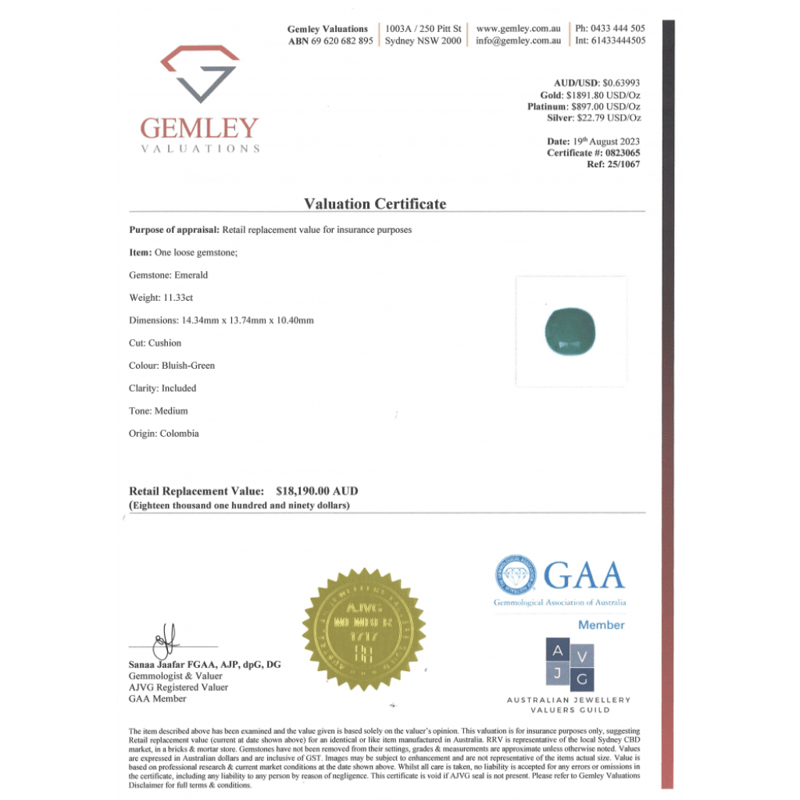 This valuation has been conducted by an independent third-party professional. The valuation amount is an assessment by the issuing valuer and does not reflect the auction value of the item.