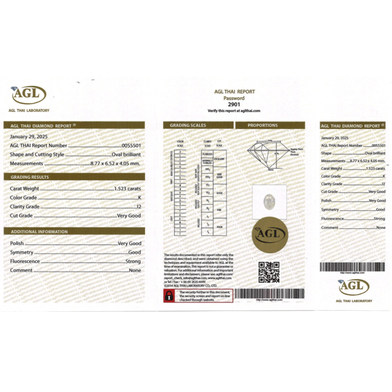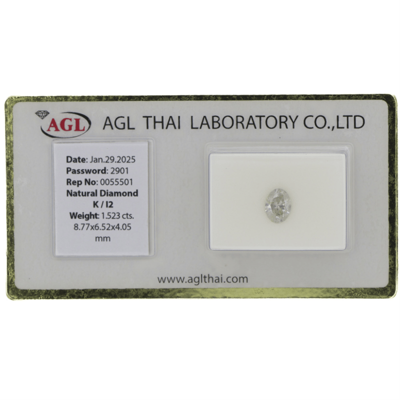 Oval Brilliant Cut, K Colour, I2 Clarity, Loose, Unset. Stone Comes Sealed With Agl Report: 0055501.