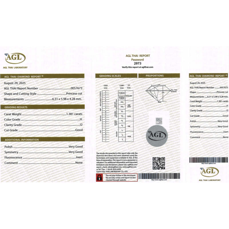 Princess Cut, H Colour, I2 Clarity, Loose, Unset. Stone Comes Sealed With Agl Report: 0057673.