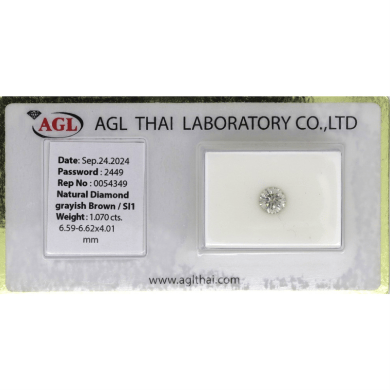 1.070CT CERTIFIED, NATURAL BROWN DIAMOND Round Brilliant Cut, Greyish-Brown, Si1 Clarity, Loose, Unset. Stone Comes Sealed With Agl Report: 0054349. Valuations Provided by an Independent Third-Party Professional Not Directly Associated With Lloyds Auctions at AUD $$16,000.00This valuation has been conducted by an independent third-party professional. The valuation amount is an assessment by the issuing valuer and does not reflect the auction value of the item. Any inquiries regarding the valuation should be directed to the issuing valuer (refer to contact details on the certificate), as Lloyds Auctions has no affiliation or influence over the valuation, the valuer, or the stated amount. 0645928+2329