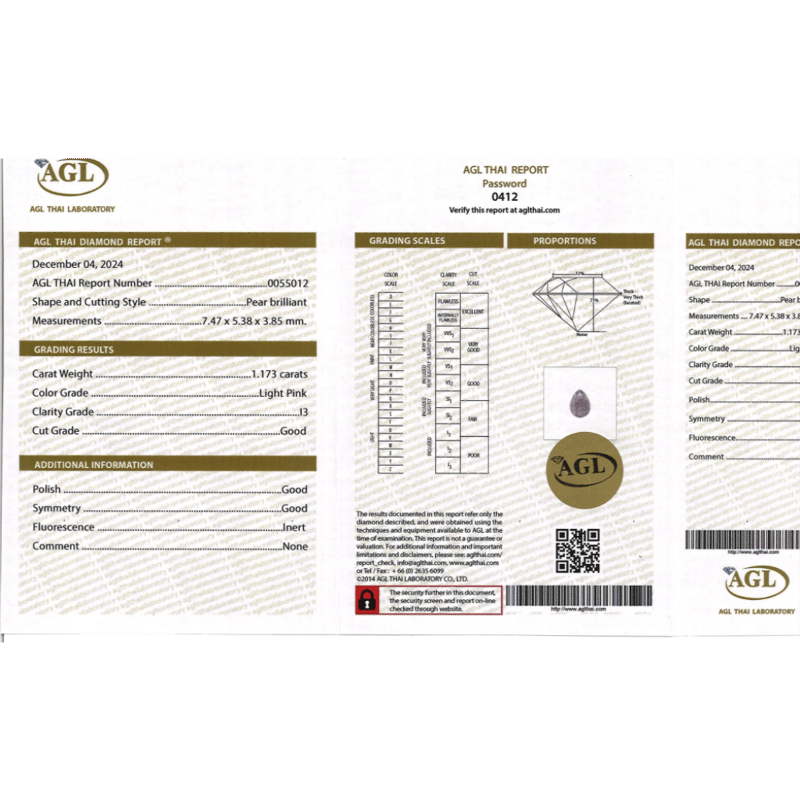 1.173CT CERTIFIED, NATURAL PINK DIAMOND Pear Brilliant Cut, Faint Pink Colour, I3 Clarity, Loose, Unset. Stone Comes Sealed With Agl Report: 0055012. Valuations Provided by an Independent Third-Party Professional Not Directly Associated With Lloyds Auctions at AUD $$20,000.00This valuation has been conducted by an independent third-party professional. The valuation amount is an assessment by the issuing valuer and does not reflect the auction value of the item. Any inquiries regarding the valuation should be directed to the issuing valuer (refer to contact details on the certificate), as Lloyds Auctions has no affiliation or influence over the valuation, the valuer, or the stated amount. 0645928+2344
