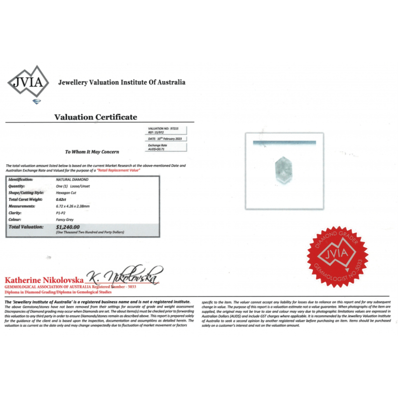 Hexagon Cut, Fancy Grey, P1-P2 Clarity, Loose, Unset.