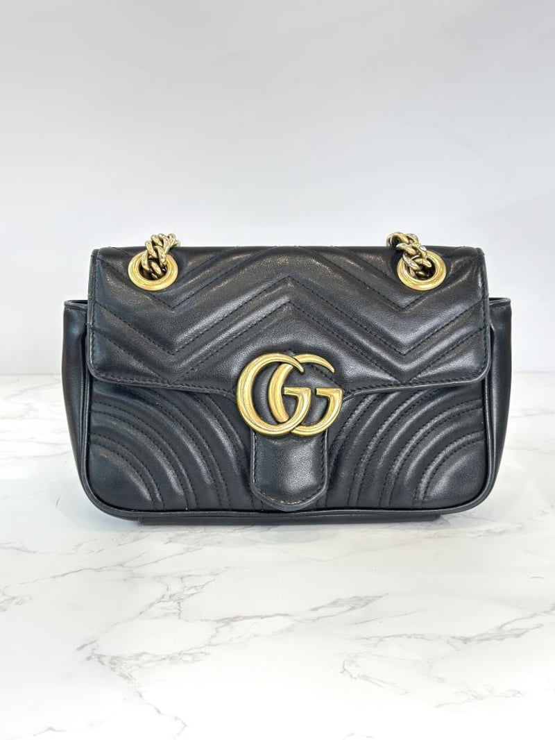 GUCCI MARMONT MEDIUM BAG BLACK CALFSKIN Condition: Good - Refer To Images 488437+12