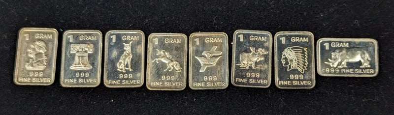 EIGHT 1 GRAM 999 FINE SILVER BARS