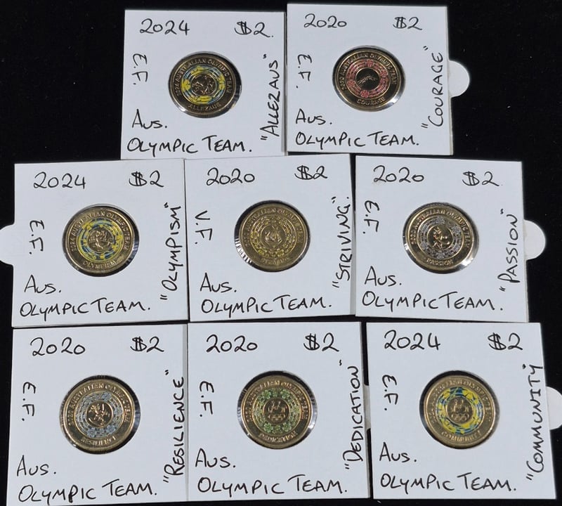 AUSTRALAIN OLYMPIC TEAM $2 COIN COLLECTION 8 Coins In Total. Mixed Conditions 586380+8