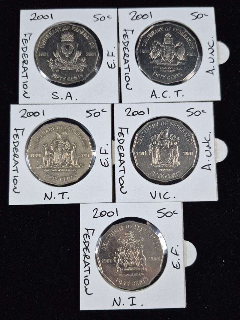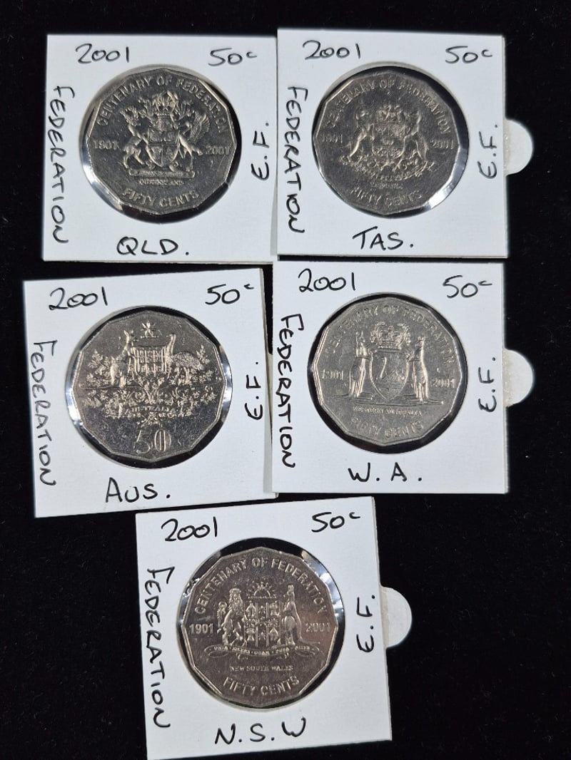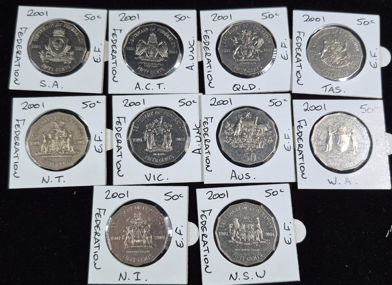 CENTENARY OF FEDERATION 50C COIN SET 2001 10 Coins In Total. Mixed Conditions 586380+11