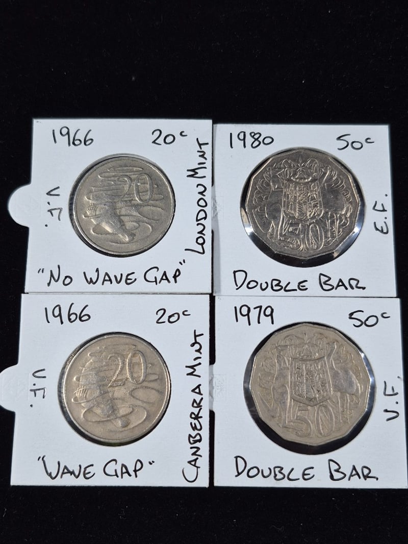 ML1979 & 1980 DOUBLE BARS & 1966 20C COINS WAVEGAP (CANBERRA) & NO WAVE GAP (LONDON)