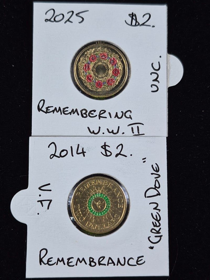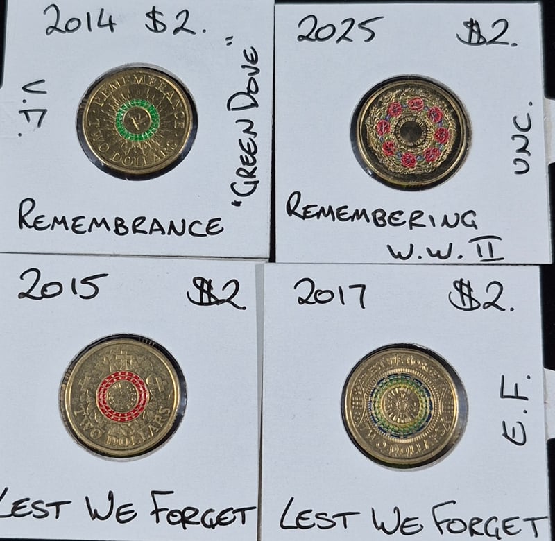 COLLETION OF WAR REMEMBERANCE AUSTRALIAN $2 COINS 4 Coins In Total, Mixed Conditions 586380+27