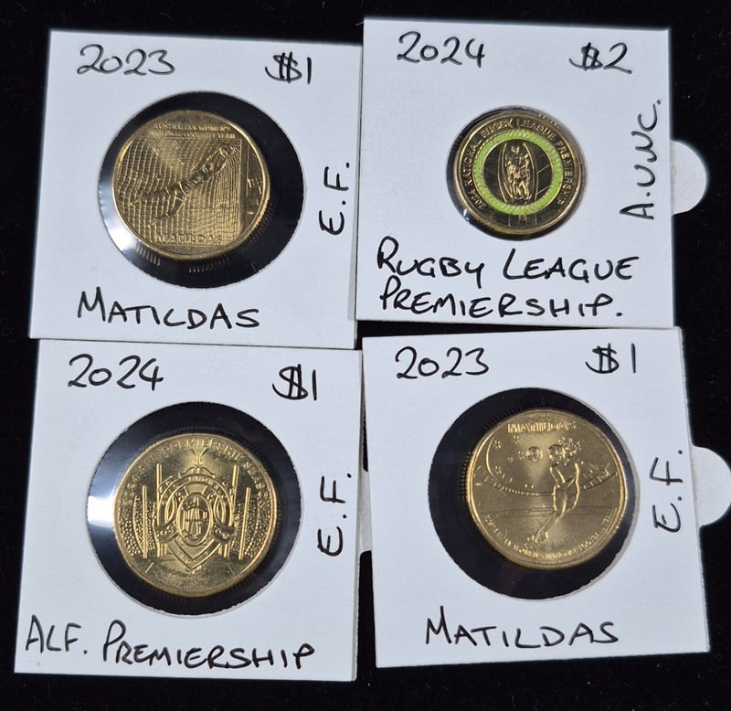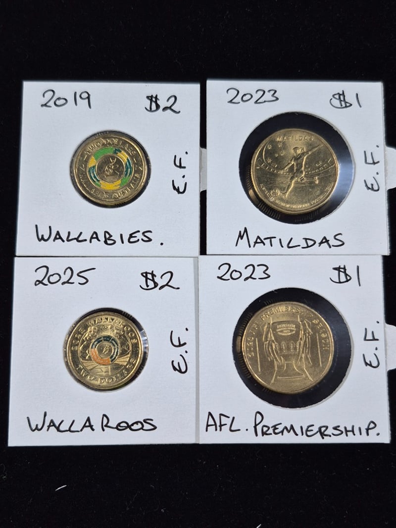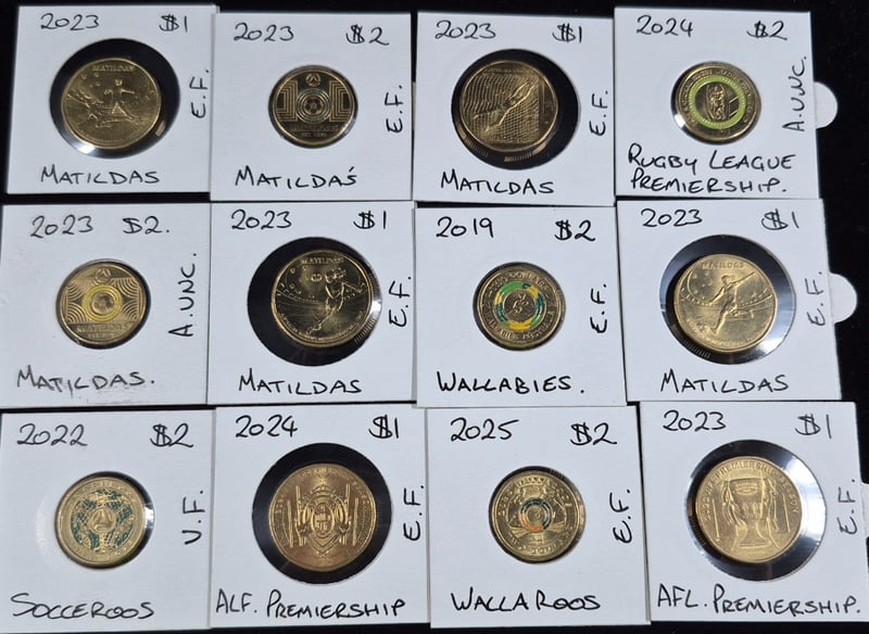 AUSTRALIAN SPORTING $1 & $@ COIN COLLECTION INCLUDING MALTILDAS, WALLAROOS, AFL, WALLABIES & SOCCEROOS