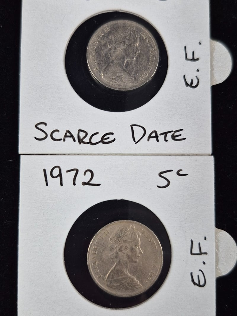 RARE 1972 AUSTRALIAN SCARCE DATE 5C COINS