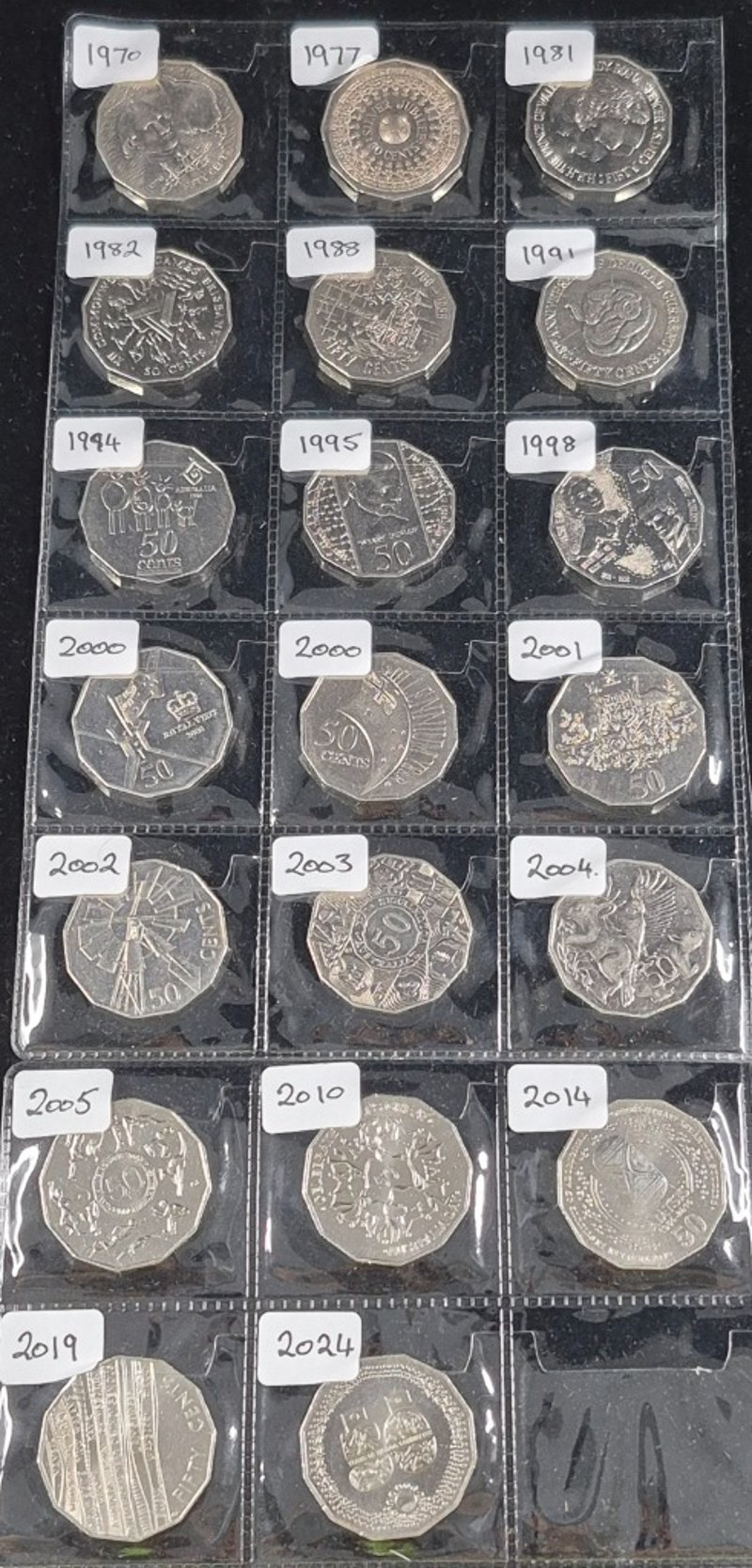 COLLECTION OF 20 COMMEMORATIVE AUSTRALAIN 50C COINS RANGING FROM 1970 - 2024 20 Coins Total, Mixed Conditions 586380+34