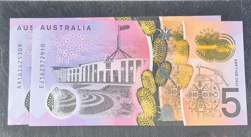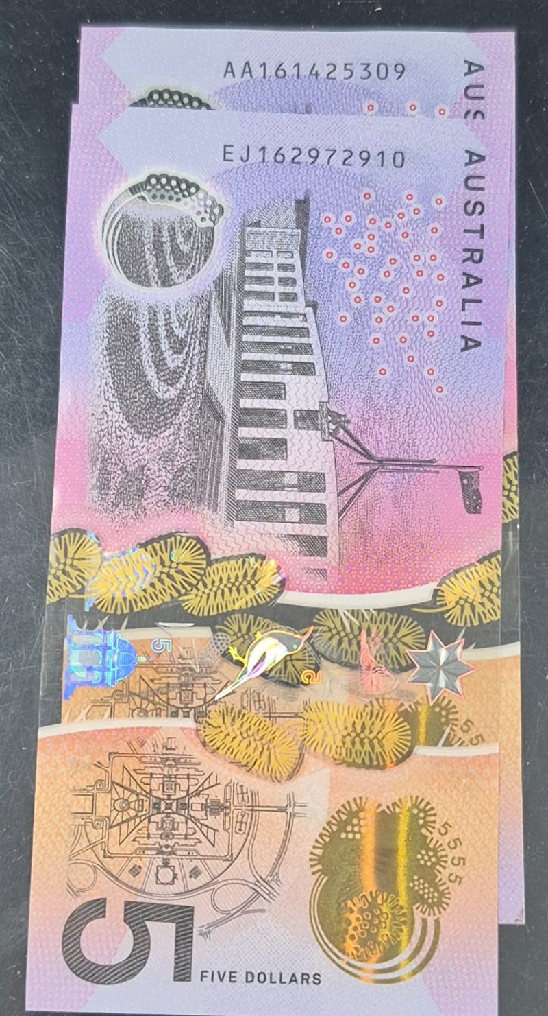 FIRST & LAST PREFIX 2016 AUSTRALIAN $5 NOTES