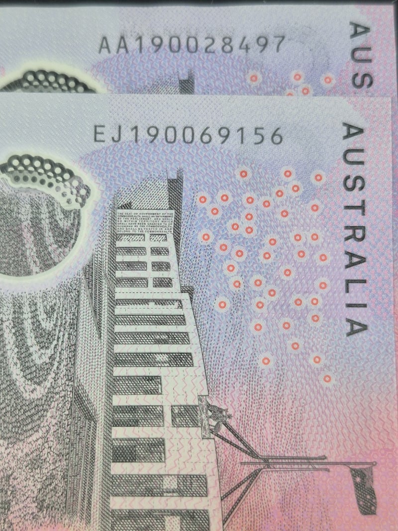 FIRST & LAST PREFIX 2019 AUSTRALIAN NOTES First Prefix - Aa 190028497 Last Prefix - Ej 190069156 586380+37