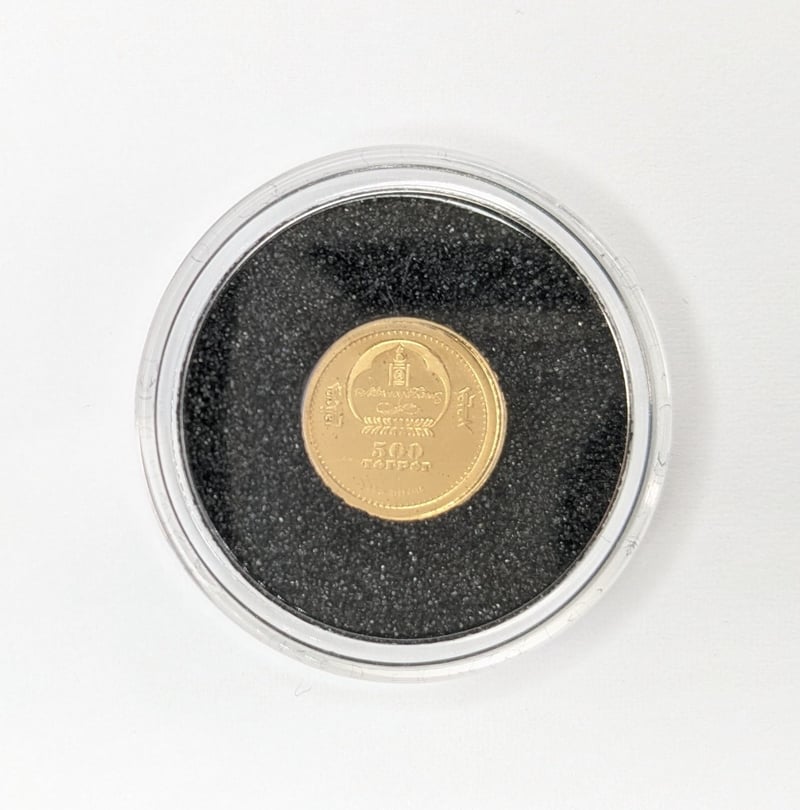 Face Value: 500 Togrog. Metal: 999 Fine Gold. Weight: 0.5 Grams. Diameter: 11 Mm. Mintage: 10,000. Quality: Proof. Accompanied By Certificate Of Authenticity