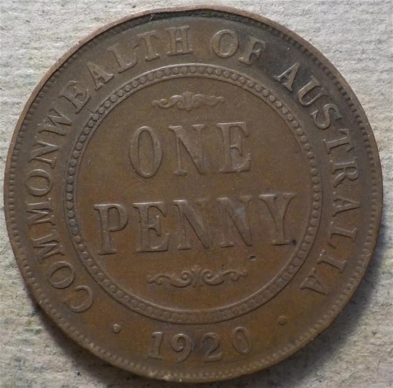 1920 AUSTRALIA KGV ONE PENNY SCARCE DATE