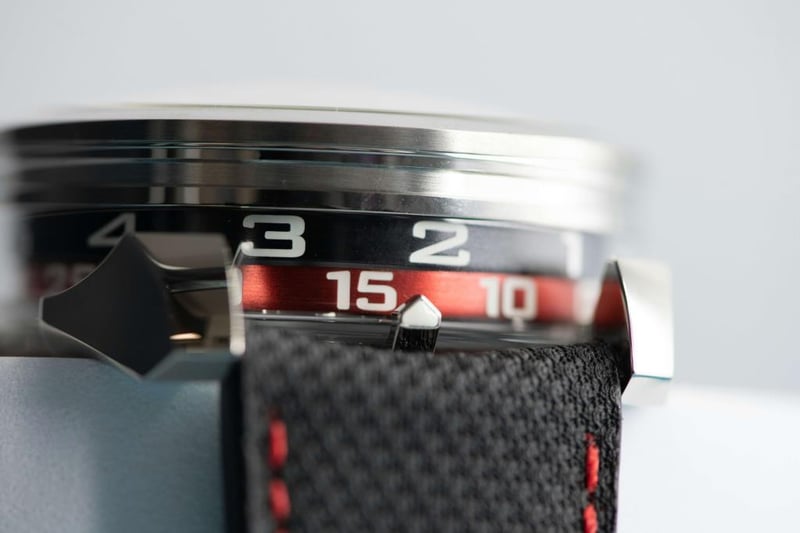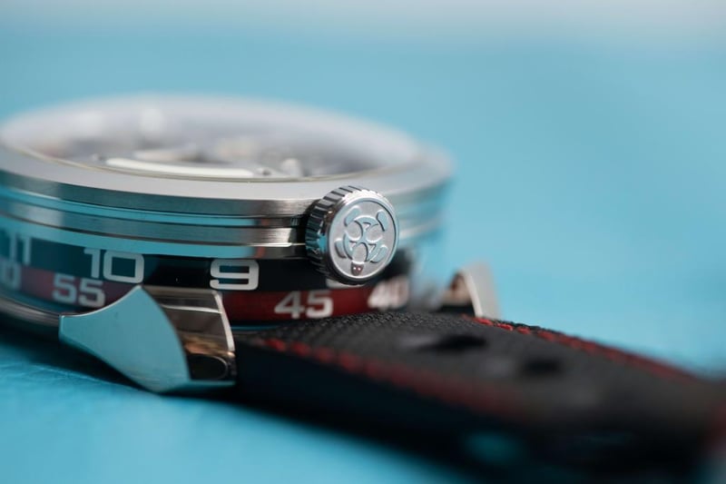 Movement: upside down modified Miyota movement powered by a triple blade winding motor in Titanium ad Tungsten