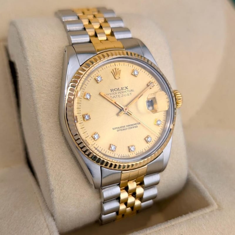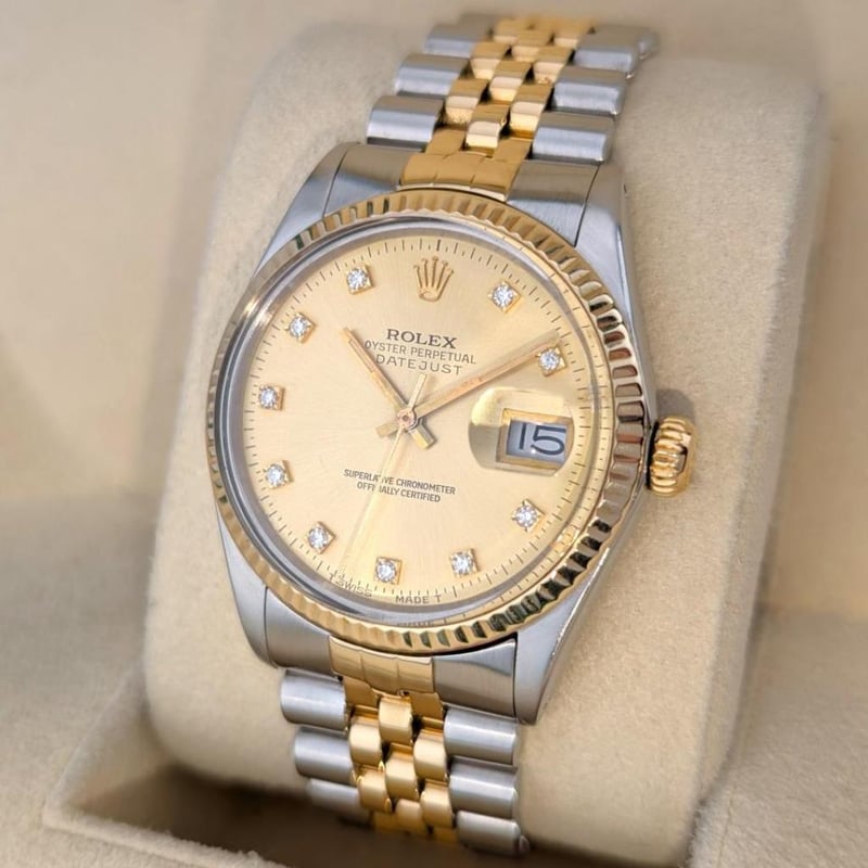 ROLEX 16013 DATEJUST 36 CHAMPAGNE DIAMOND DIAL 36MM 1988 R-SERIAL