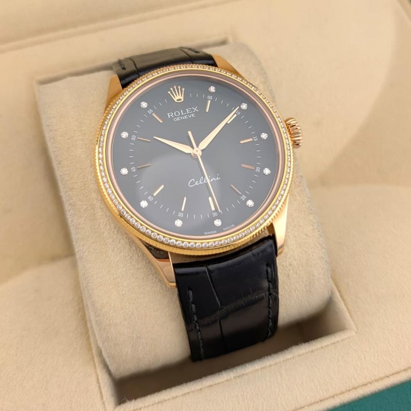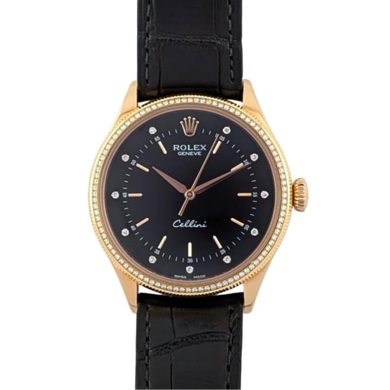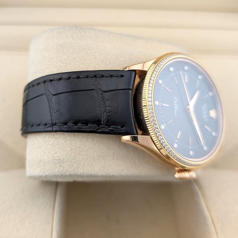 ROLEX 50605RBR CELLINI TIME 18K BLACK DIAMOND DIAL 39MM 2015