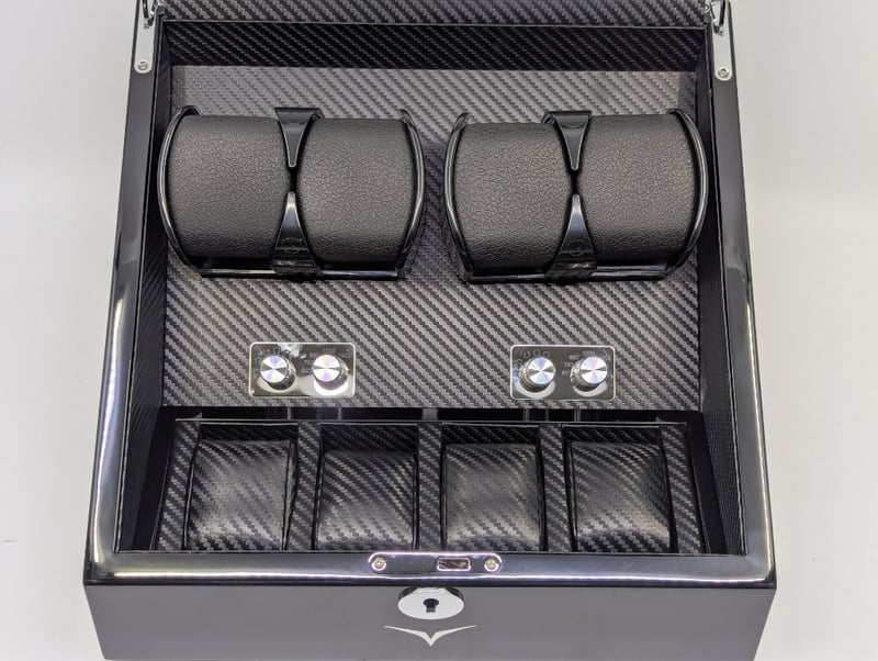 Four Watch Winder, Includes Four Additional Storage Watch Spaces, Includes Interior Lights, Centre Lock With Key, Includes Power Cable, Dust Bag, Dust Clothes And Box