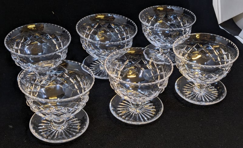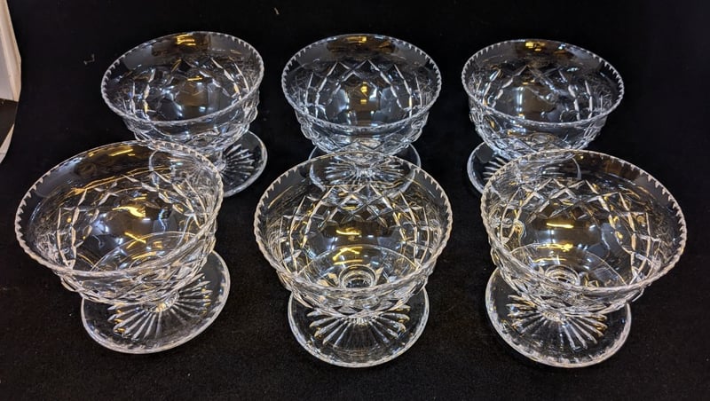 SIX CRYSTAL FOOTED DESSERT BOWLSCondition: Good - Refer To Images585040+3