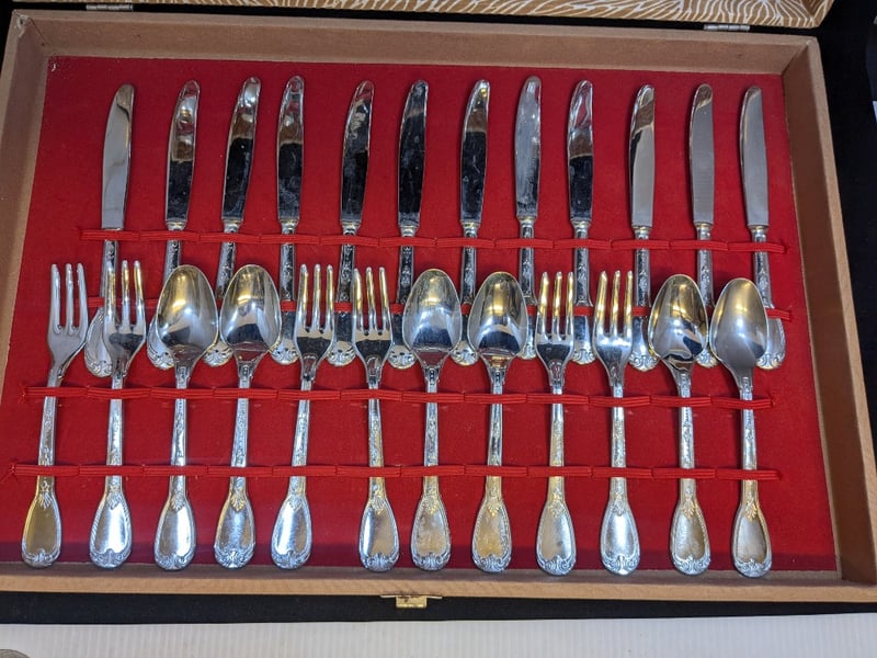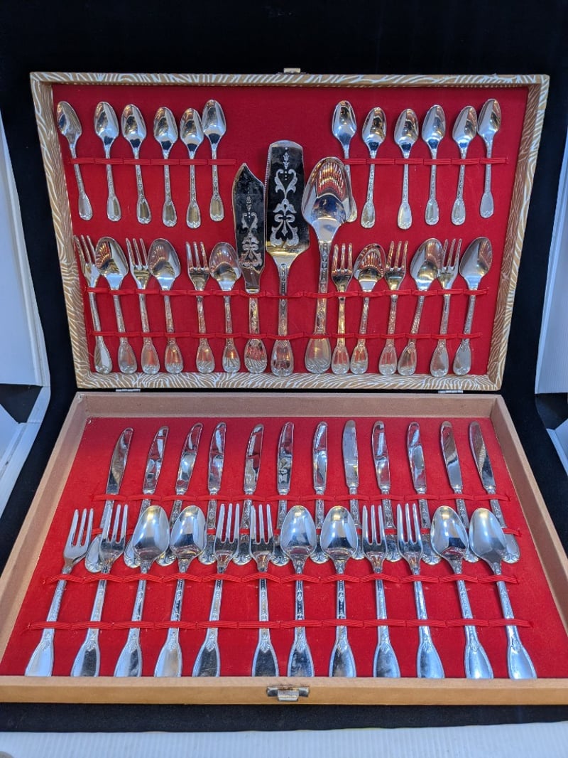 SILVER-PLATED CUTLERY SET IN BOXDimensions Approx: 49Cm (W) X 33Cm (D) X 4Cm (H)Condition: Good - Refer To Images585040+14