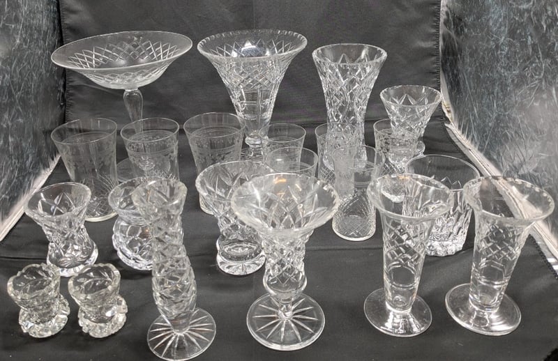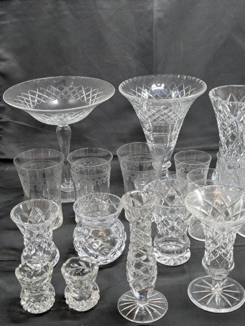 COLLECTION OF GLASSWAREIncludes Various Vases, Scotch Glasses, Serving Bowls, EtcCondition: Good - Refer To Images585040+50