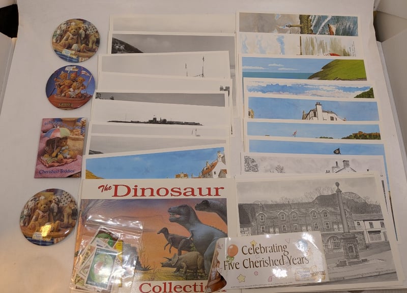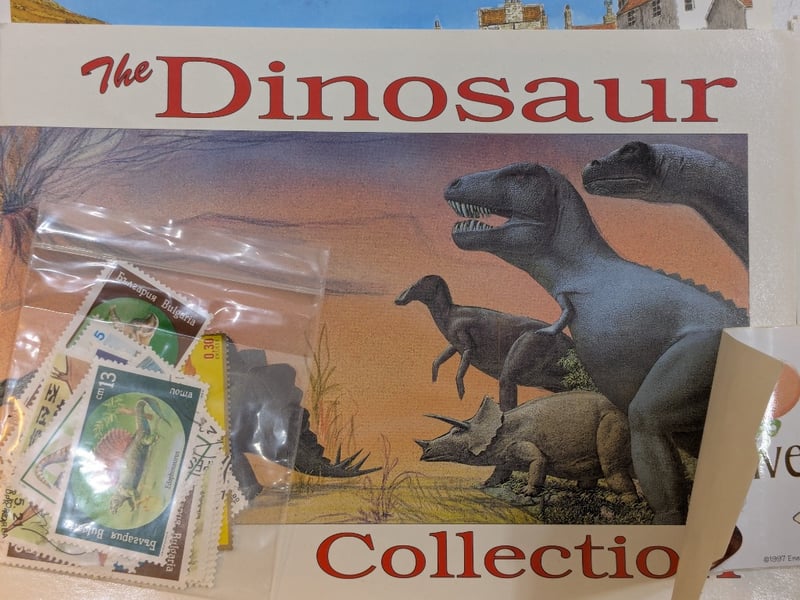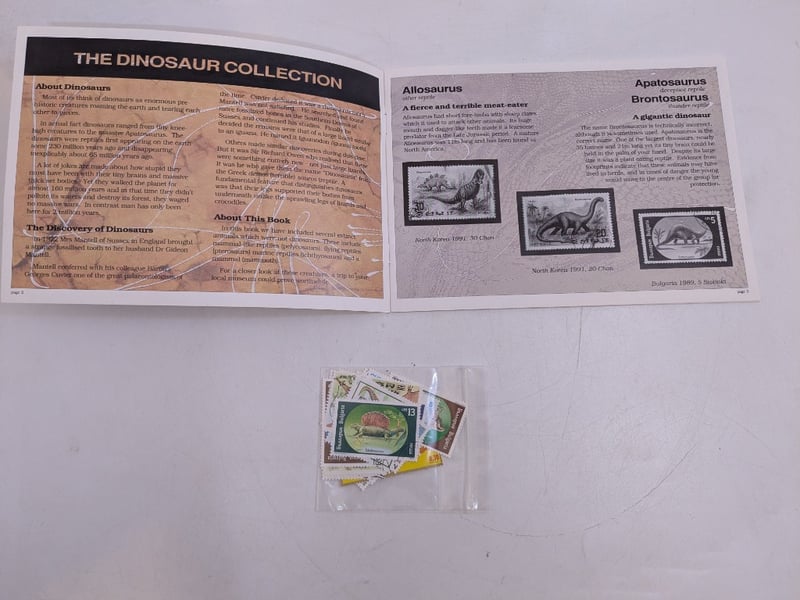Includes The Dinosaur Collection Stamp Book, Various Postcards And Badges