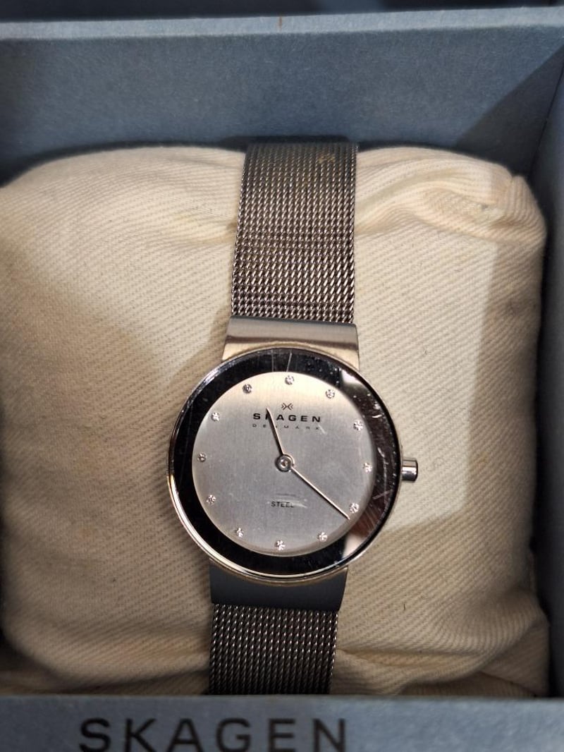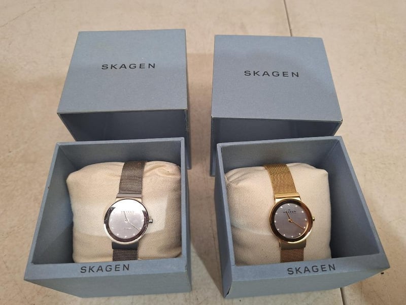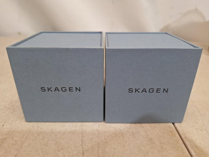 2 x Brand New Skagen Denmark Watches, stainless steel mesh straps, includes box & pillows.