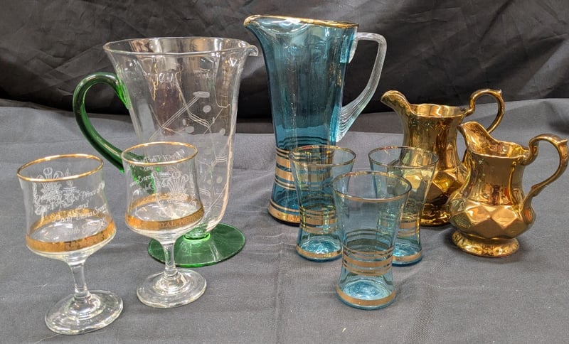 Includes Prince Charles And Princess Diana Wedding Goblets, Ceramic Lusterware Jugs, Glass Pitchers With Glasses