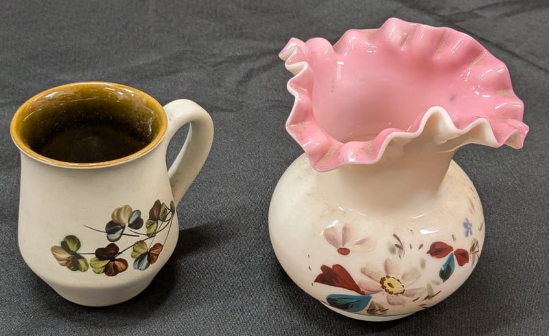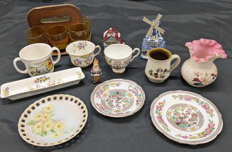 Includes Royal Doulton Winnie The Pooh Mug, Royal Stafford Bone China Plates And Teacup, Libbey Styled Amber Glasses With A Leather Bar Caddy.