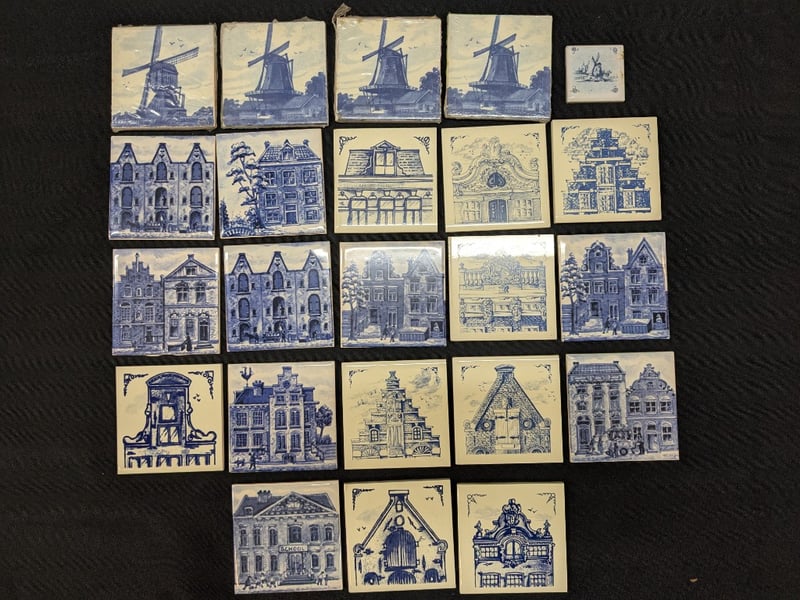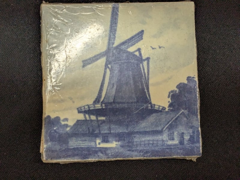 Includes Klm Royal Dutch Airlines 1984 Delft Blue Coasters, Mini Windmill Coaster, And Four Deft Blue Windmill Coasters