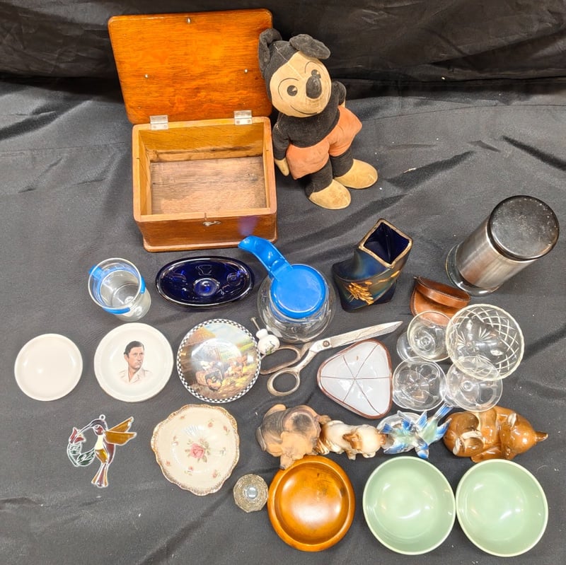 Including Vintage Barber'S Shears, Bowls, Plates, Mickey Mouse Doll, And More