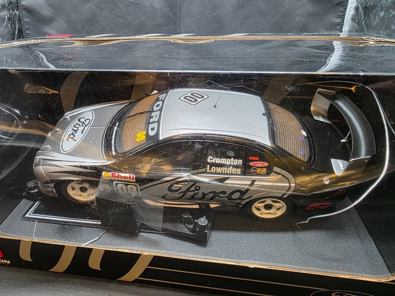 BIANTE/AUTOART 1:18 SCALE V8 SUPERCAR LOWNDES/CROMPTON #00 "00 MOTORSPORT" FORD FALCON AU 2002.CONDITION: CAR SLIDES AROUND IN BOX, THE BOX HAS MINOR DENTS AND SLIGHT DAMAGE TO THE CAR.Item Size: Height: 16cm, Width: 33cm, Depth: 17cm, Weight: 3KgCondition: Fair - Refer To Images585066+11