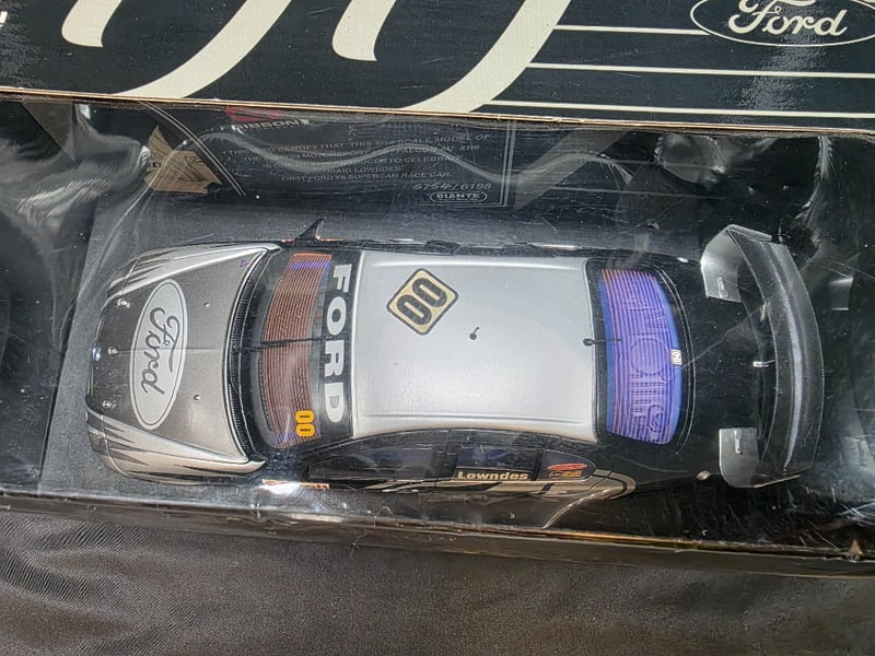 1:18 DICAST MODEL FORD FALCON AU #00 CRAIG LOWNDES FIRST FORD V8 SUPERCAR BLUE ROLL CAGE WITH OPENING PARTS. COMES IN ORIGINAL PACKAGING COA ALSO INCLUDED. CONDITION: SLIGHT BUMPS ON BOX. CAR SLIDES AROUND INSIDE BOX.Item Size: Height: 16cm, Width: 33cm, Depth: 17cm, Weight: 3KgLimited Edition 5754 Out Of 6198.Condition: Fair - Refer To Images585066+12