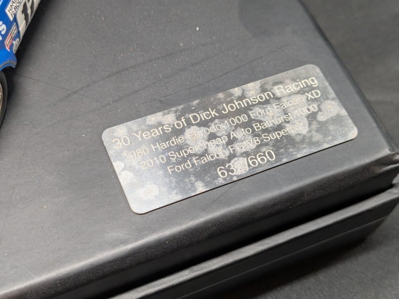 LIMITED EDITION BIANTE MODEL CARS "THIRTY YEARS OF DICK JOHNSON RACING" CAR MODELSItem Size: Height: 25cm, Width: 17cm, Depth: 10cmEngrave Plaque Includes "1980 Hardie-Ferodo, 1000 Ford Falcon Xd, 2010 Supercheap Auto Bathurst 1000, Ford Falcon Fg V8 Supercar"Edition: 632/660Scale: 1:43 Scale Diecast ReplicaCondition: Good - Refer To Images585066+18