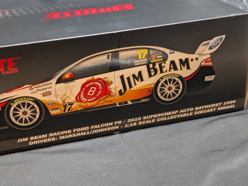 LIMITED EDITION BIANTE MODEL CARS JIM BEAM RACING FORD FALCON FG, 2010 SUPERCHEAP AUTO BATHURST 1000Item Size: Height: 35cm, Width: 16cm, Depth: 17cmScale: 1:18 Diecast ModelEdition: 148/550Condition: Good - Refer To Images585066+26