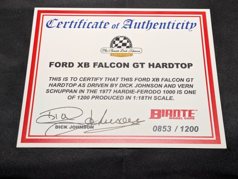 LIMITED EDITION AUTO ART FORD XB FALCON GT HARDTOP, 1977 HARDIE-FERODO 1000