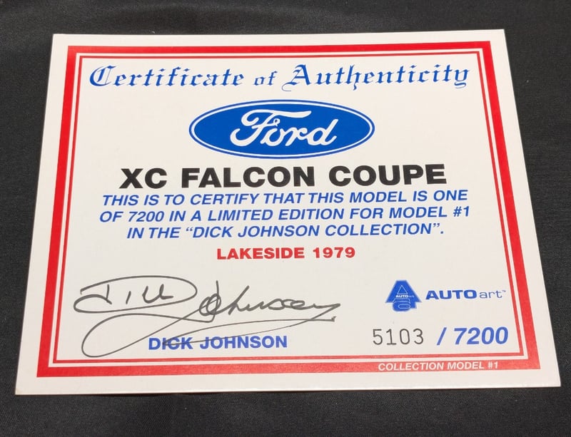 LIMITED EDITION AUTO ART XC FALCON COUPEItem Size: Height: 37cm, Width: 17cm, Depth: 16cmScale: 1:18Edition: 5103/ 7200Includes Certificate Of AuthenticityCondition: Good - Refer To Images585066+36