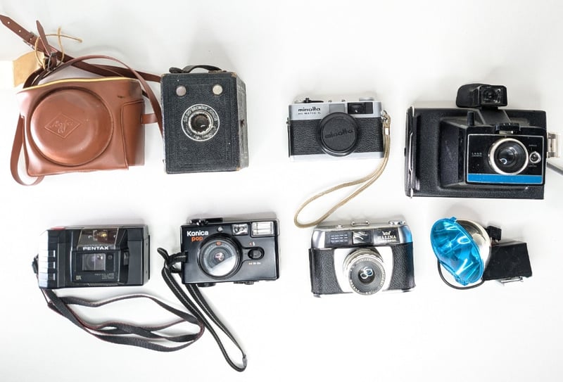 Cameras Includes, Minolta Hi-Matic G 35Mm, Kodak Six-20 Brownie Junior Box Camera, Konica Pop 35Mm, Agfa Clack Box Camera, Pentax Pc-333 35Mm, Polaroid Colorpack Ii Land Camera, Halina Paulette Electric 35Mm, Polaroid Model 268 Flash Gun And, Conway Popular Model Box Camera.