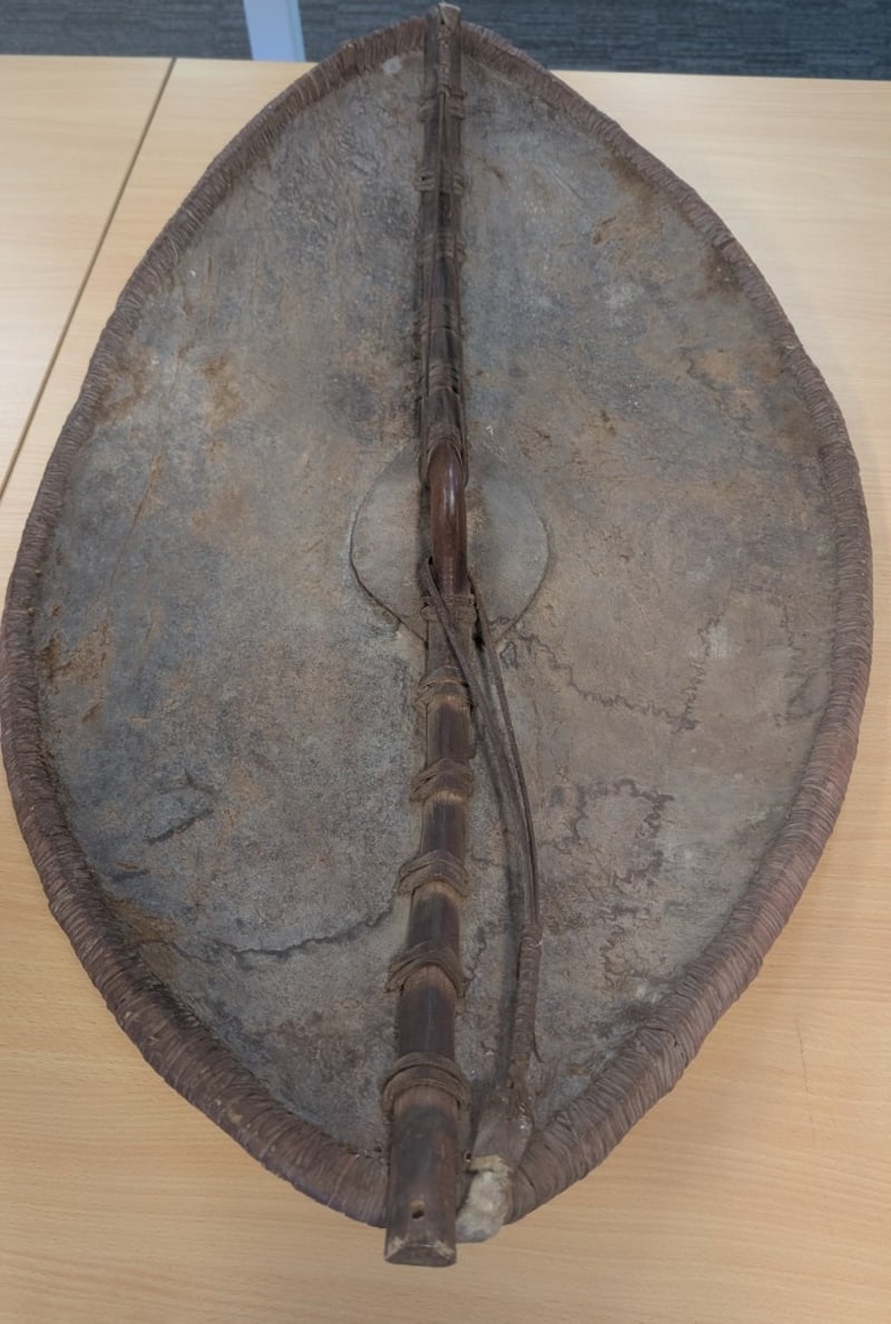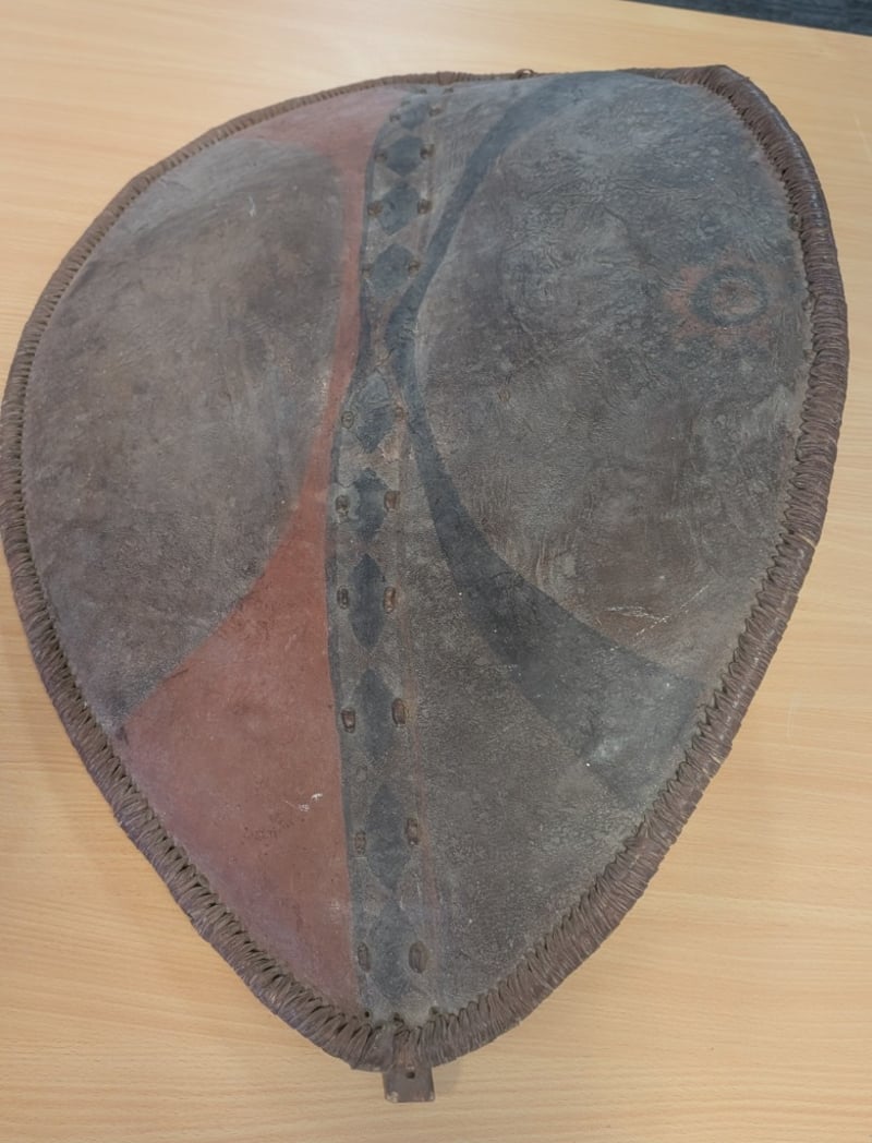 Maasai shield (also known as an elongo), a traditional piece of equipment from the Maasai people of southern Kenya and northern Tanzania.
