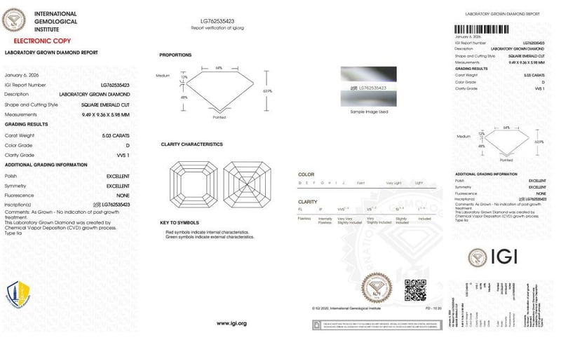 Please note that while all lab grown diamonds listed include certification, the report number or identification may vary upon arrival. This is due to standard manufacturing and batching processes. However, the diamond’s specifications — including carat, color, cut, and clarity — will match or may even exceed those advertised.