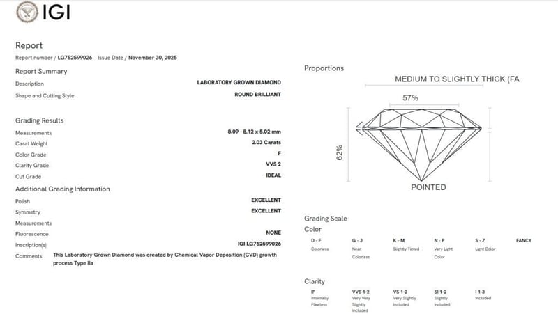 2.03 Carats F/Vvs2 Lab Grown Diamond - Igi Certified