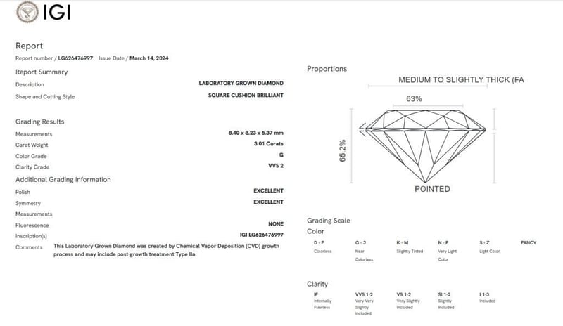 3.01 Carats G/Vvs2 Lab Grown Diamond - Igi Certified