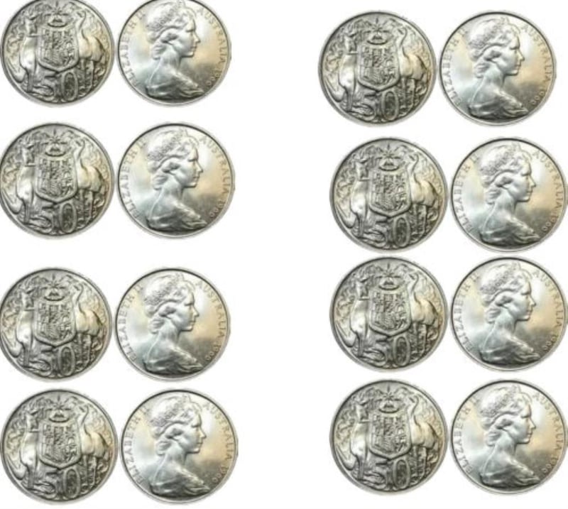 1966 AUSTRALIA SILVER 50 CENT FIRST & LAST QUEEN ELIZABETH COIN UNC X 8