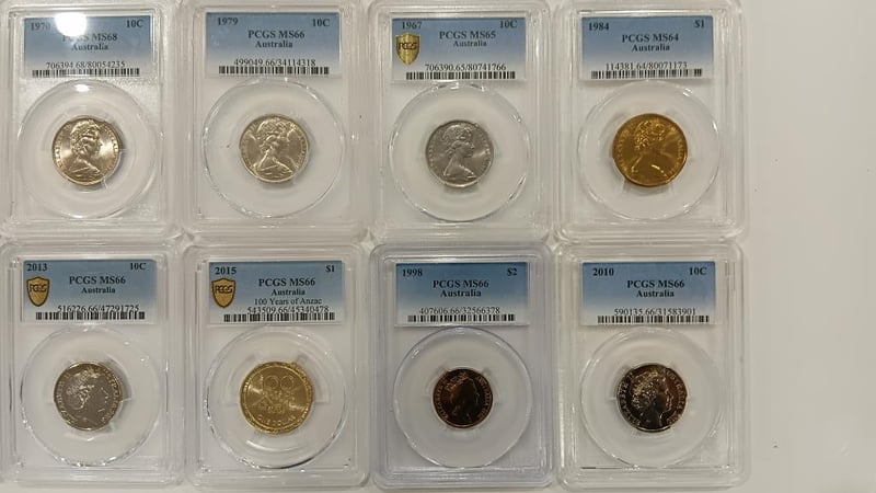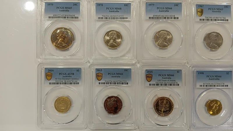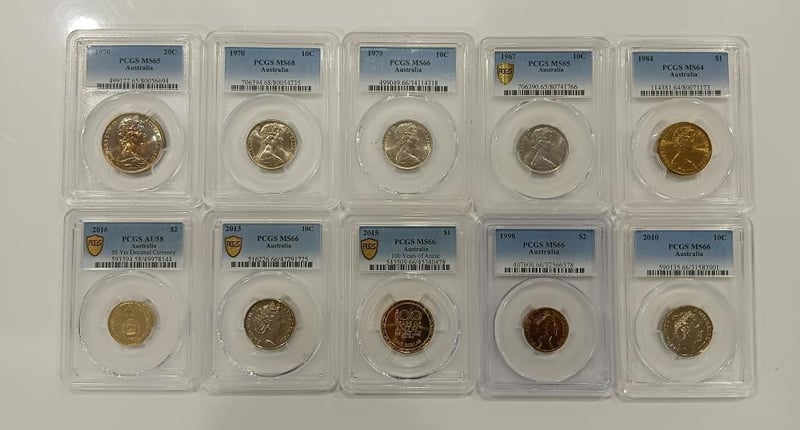 PCGS AUSTRALIAN 1969-2018 COINS, 10 COIN COLLECTION