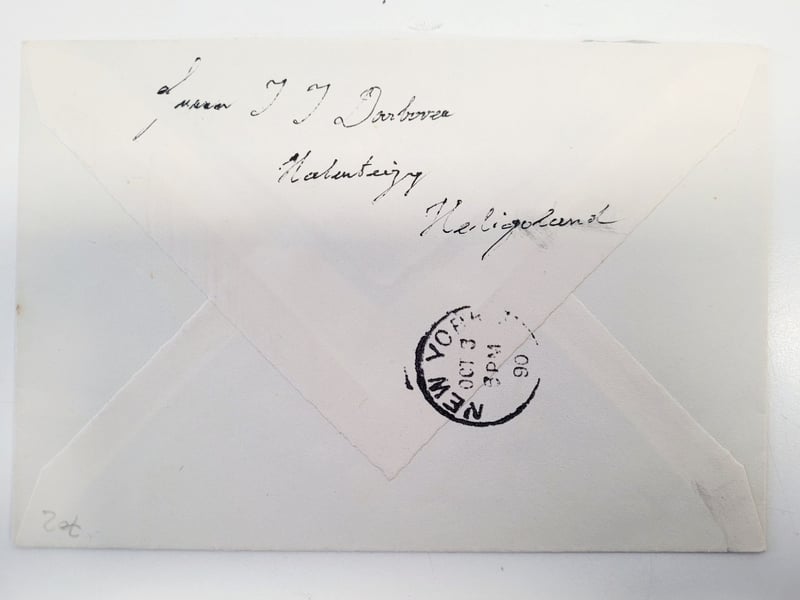 - 1879 5M 5S Dp Green , Rose, Black And Yellow , Sg19 Toed To A Rare Cover Dated 1890 With Hamburg/ Heligoland / New York Cancels With Cv Of $300,00+ ( As A Single)