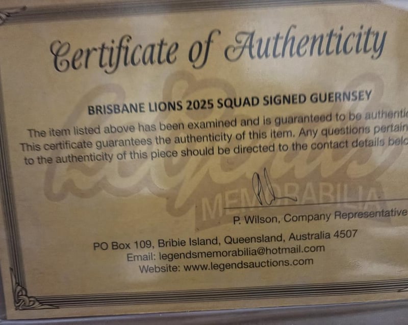 Brisbane Lions 2025 Squad Signed Guersey. The Guernsey Is Framed. Measuring 600 X 800, This Is Ready To Hang. The Item Is Accompanied By A Certificate Of Authenticity.