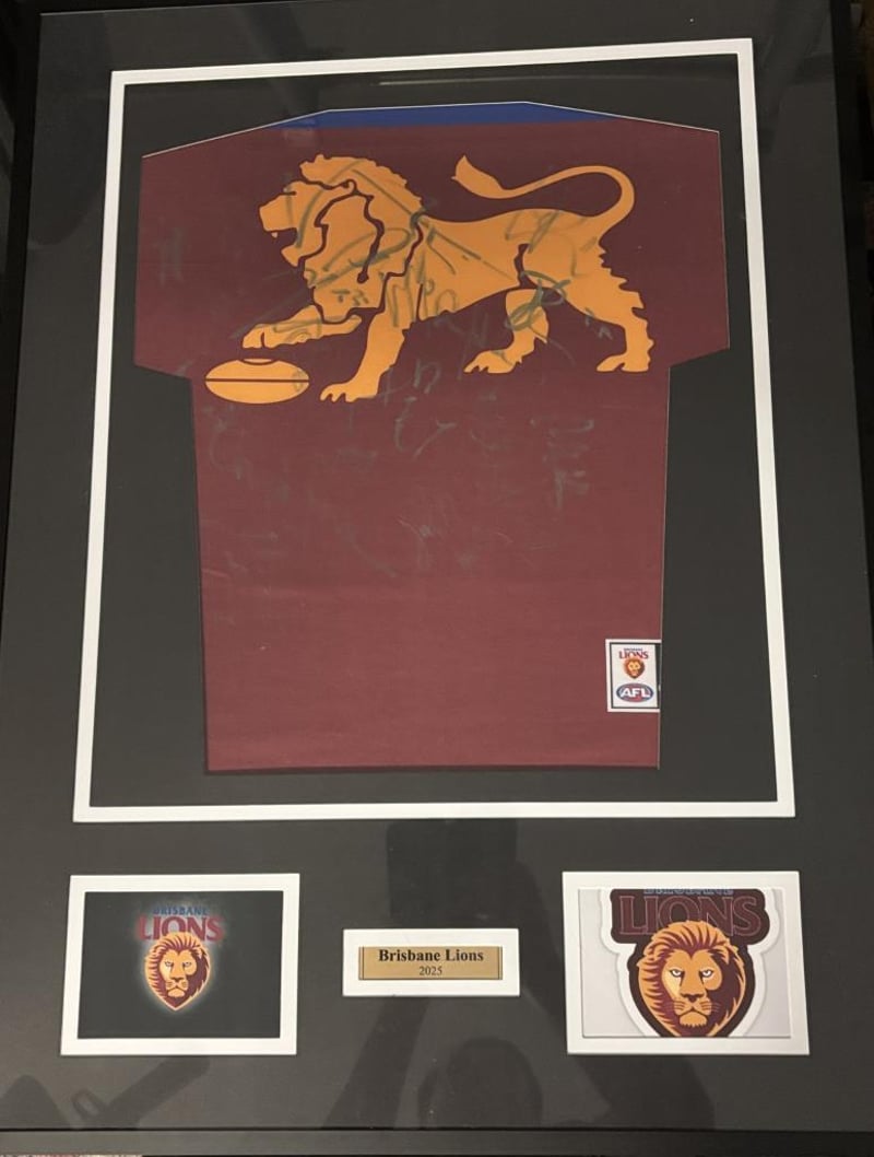 BRISBANE LIONS SIGNED &FRAMED 2025 GUERNSEY