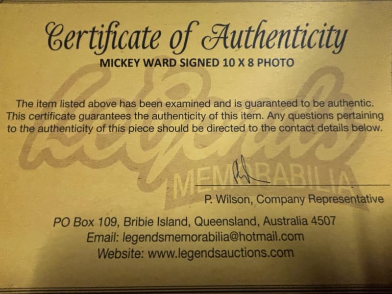 MICKEY 'THE FIGHTER' WARD SIGNED WORLD TITLE PHOTOIrish Mickey Ward Personally Signed 10 X 8 Photo From The Arterri Trilogy Wars. . The Item Is Accompanied By A Certificate Of Authenticity.Condition: Good - Refer To Images584410+16